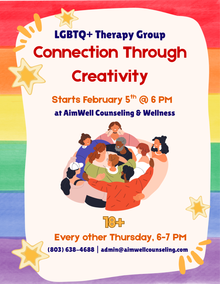groups & events Connection through Creativity A shared space to connect, unwind, and work through difficult times using creative expression. Counselor: Ashlyn Bordelon, LPCCost: $50 per meetingDuration: 6 weeks If you are interested in attending this group, or have any questions, please reach out to the office! Contact us!